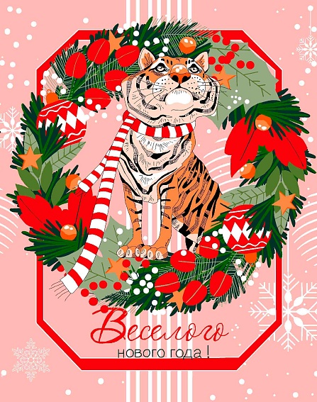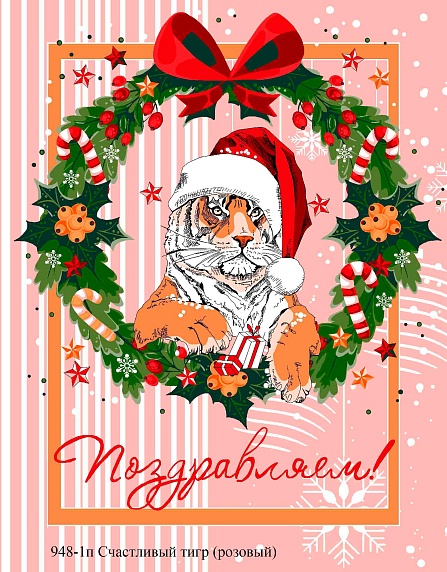 Вафельное полотно набивное 150 см, 956-1 Счастливый тигр (3 купона)