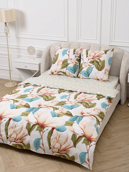 Поплин набивной 220 см, 1283 Магнолия с компаньоном 1284 Флер