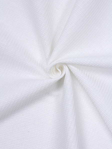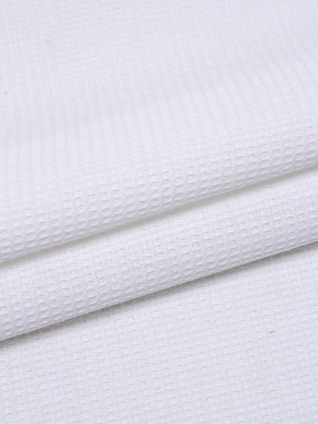 Вафельное полотно - это хлопчатобумажная ткань с хорошими гигроскопическими свойствами. Свое название получила за объемный клеточный рисунок, который формируется за счет особого переплетения нитей. Вафельное полотно используется для пошива домашнего текстиля: полотенец, салфеток, халатов, банных накидок и простыней.