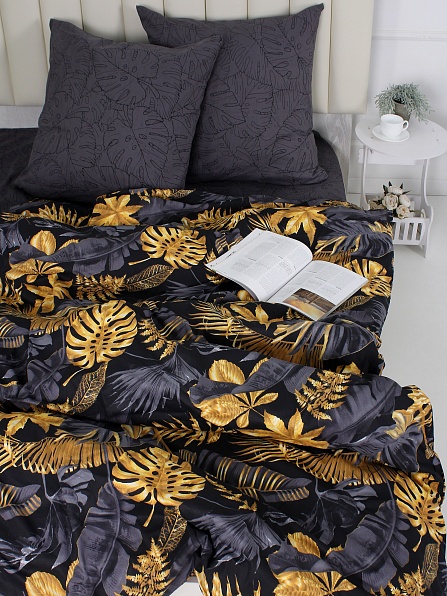 Комплект постельного белья, поплин, Монстера (1,5 спальный/150)