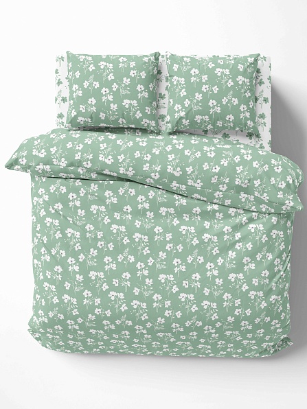 Комплект постельного белья, поплин, с молнией, Лютики зелёный (компаньон зелёный б/з)