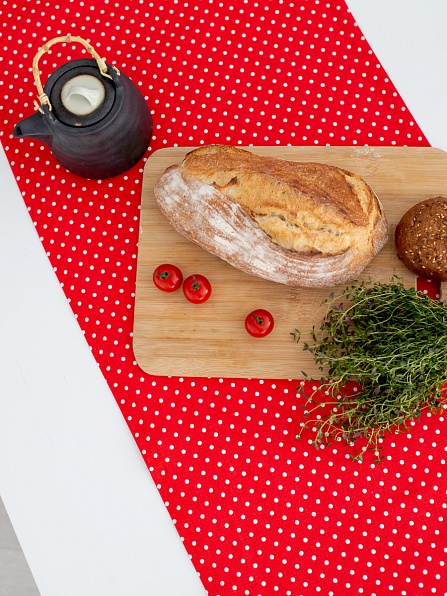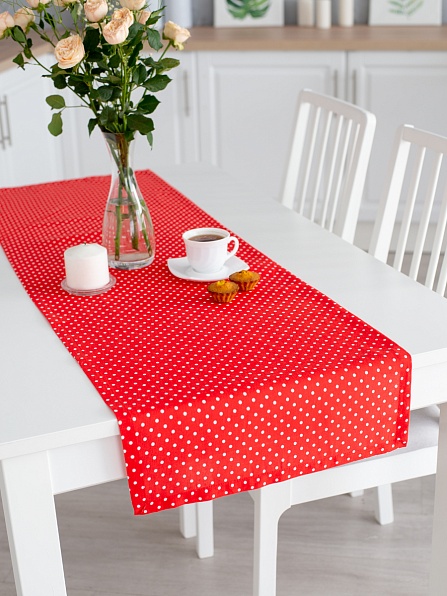 Дорожка настольная декоративная рогожка 362-6 Горошек красный