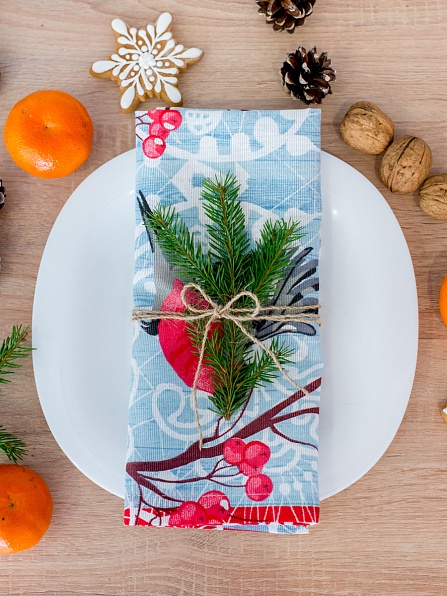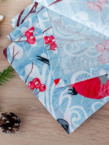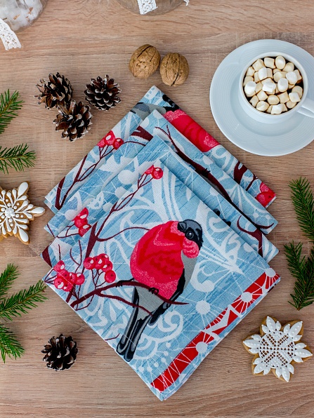 Комплект декоративных салфеток рогожка 4 шт. с евроуголком 953-1 Снегири