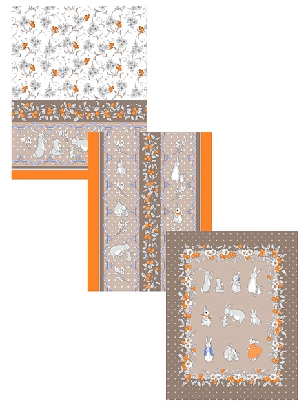 Комплект полотенец 3 шт, Зайцы (бежевый)