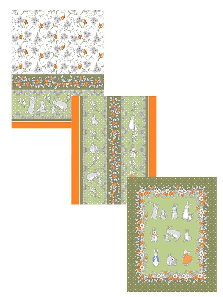 Комплект полотенец 4 шт, Зайцы пасхальные (зеленые)
