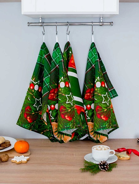 Комплект полотенец с петелькой, 4 шт, Праздничный
