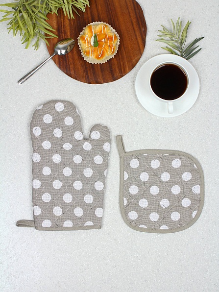 Набор прихватка+рукавичка, горох (серый) (18*18 см, 18*28 см)
