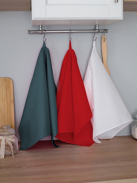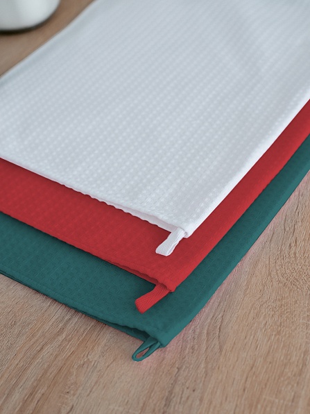 Комплект полотенец 3 шт, с петелькой (красный+белый+малахит) (45*70)