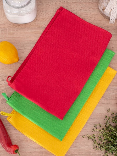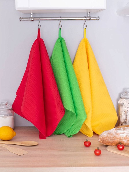 Комплект полотенец 3 шт, с петелькой (красный+желтый+зеленый)