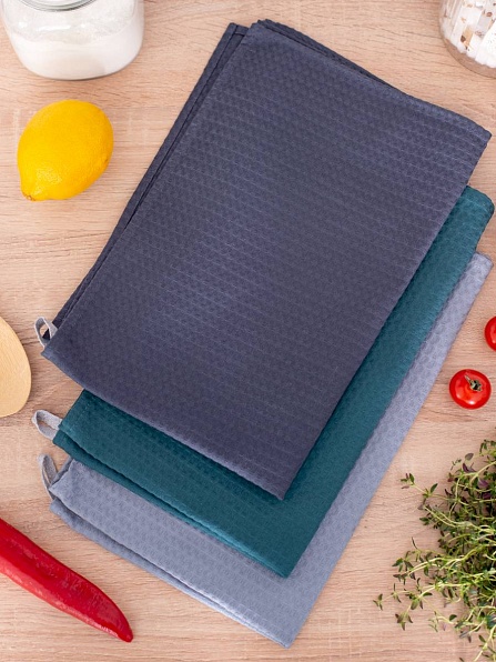 Вафельные полотенца представлены в стильных оттенках, которые украсят ваш дом. Вы можете подобрать уже готовый комплект или собрать свой. Полотенца изготовлены из вафельного полотна с крупной клеткой (7 мм). Состав 100% хлопок. За счет своей структуры полотенца легко впитывают влагу, быстро сохнут и не удерживают запахи. Полотенца с петелькой. Полотенца можно использовать на кухне для мытья и сушки посуды, для уборки, сушки овощей и фруктов, для мытья рук. Однотонные полотенца станут изящным дополнением интерьера вашей кухни или ванной комнаты. Полотенца легко стираются, долго сохраняют свои первоначальные свойства.