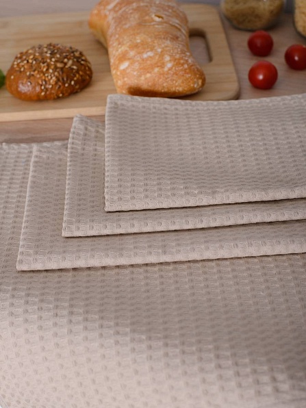 Набор полотенец из однотонного вафельного полотна выполнен из ткани плотностью 240 г/м2, состав 100% хлопок. Размер и количество полотенец позволяет использовать их на ваше усмотрение как в ванной, так и на кухне. Полотенца из вафельного полотна с крупной клеткой (7 мм) за счет своей структуры хорошо собирают влагу, быстро сохнут и не удерживают запахи. Полотенца без петельки. В ассортименте представлены различные цвета, которые помогут сделать ваш дом более уютным.