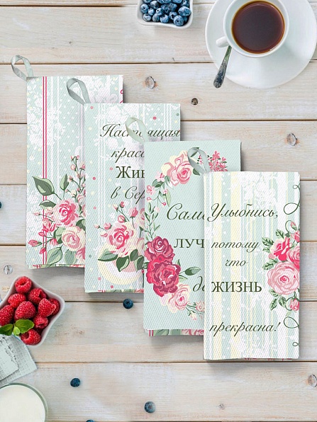 Набор полотенец с петелькой, 4 шт, рогожка, Лучшие пожелания