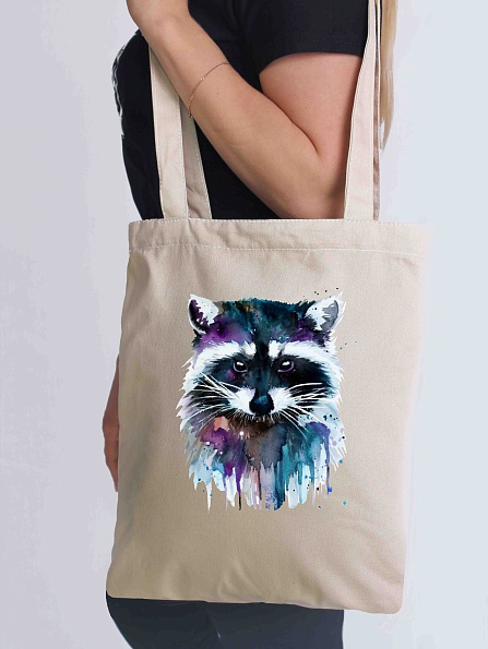 Сумка шоппер, Енот (бежевая) (35*40)