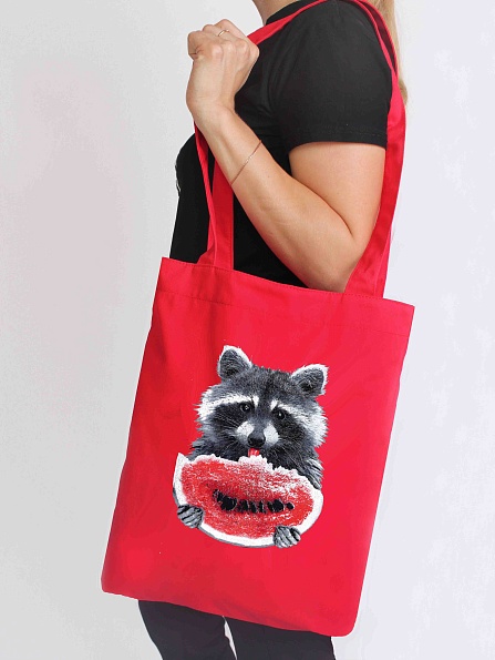 Сумка шоппер, Енот с арбузом (красный)
