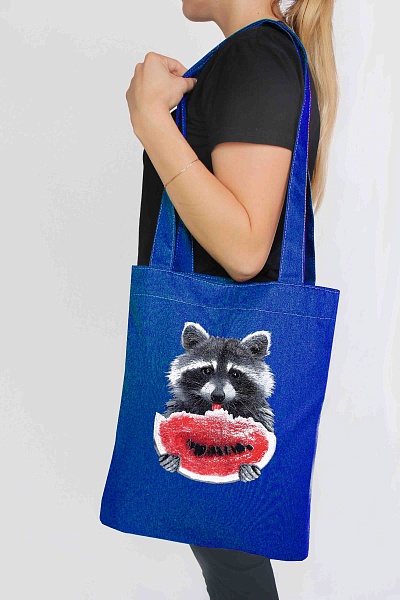 Сумка шоппер, Енот с арбузом (василек)